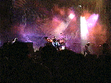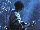 Robert Smith of The Cure on stage in a Maple Leaf jersey.